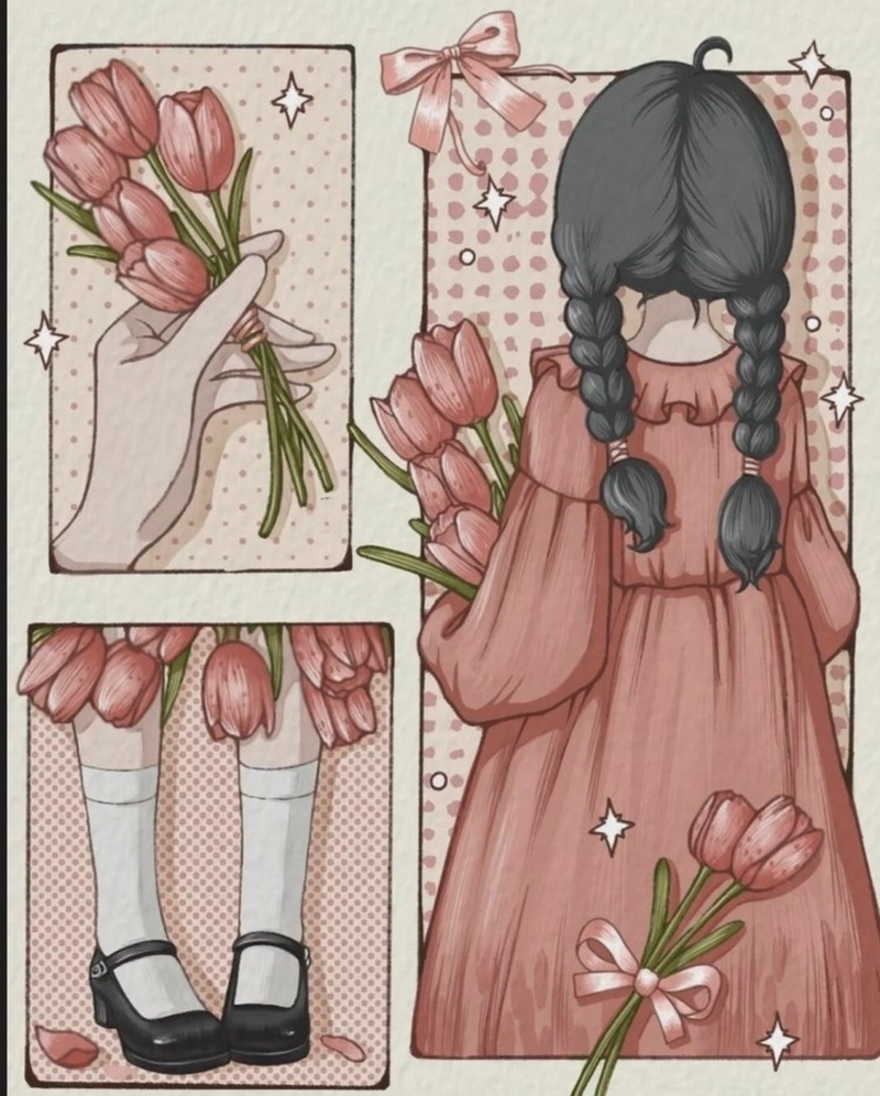 • Bông hoa: Vẽ những bông hoa nhỏ với màu sắc pastel.